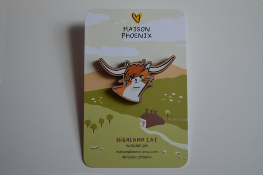 Highland Cat Wooden Pin