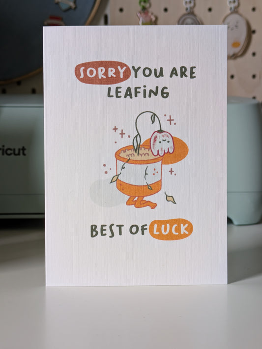Sad Plant Greeting Card (Sorry you are leafing - Best of luck)