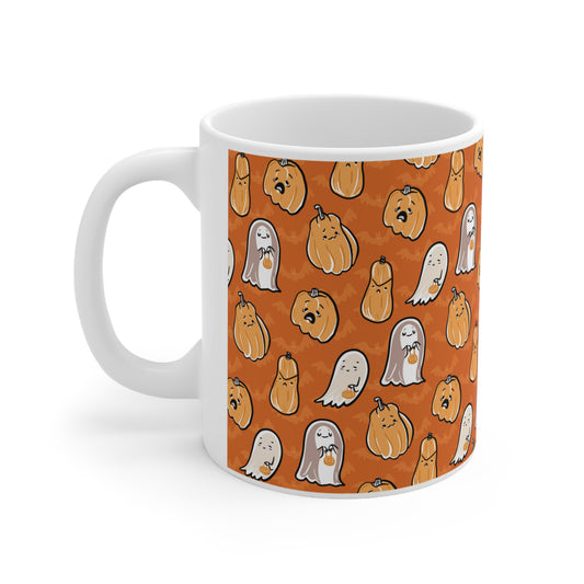 Orange Ghosts And Pumpkins Ceramic Mug (11oz / 0.33 l)
