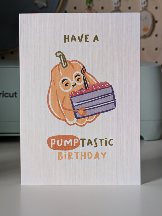Pumpkin Cake Greeting Card (Have a pumptastic birthday)