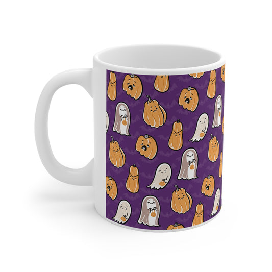 Purple Ghosts And Pumpkins Ceramic Mug (11oz / 0.33 l)