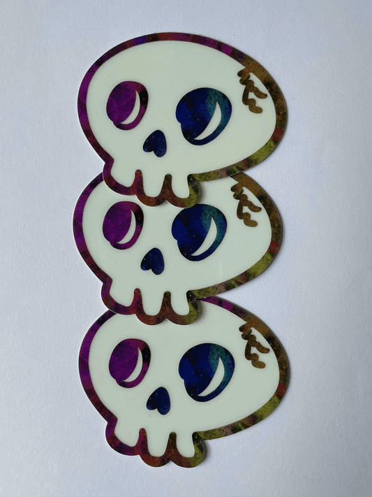 Pip, the green eyed skull, is slightly mischievous, energetic, curious, a little bit of a prankster, but always good-hearted.