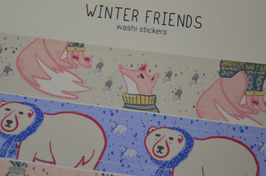 Winter Friends Washi Tape Style Sticker Sheet