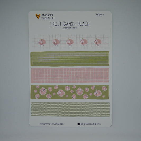 Peach Washi Tape Style Sticker Sheet (Fruit Gang)