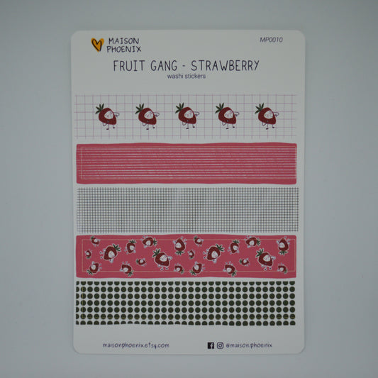 Strawberry Washi Tape Style Sticker Sheet (Fruit Gang)