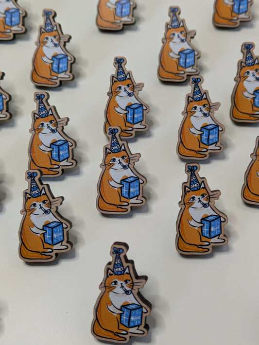 Party Cat Wooden Pin